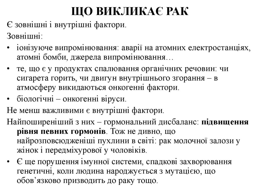 ЩО ВИКЛИКАЄ РАКЄ зовнішні і внутрішні фактори.
