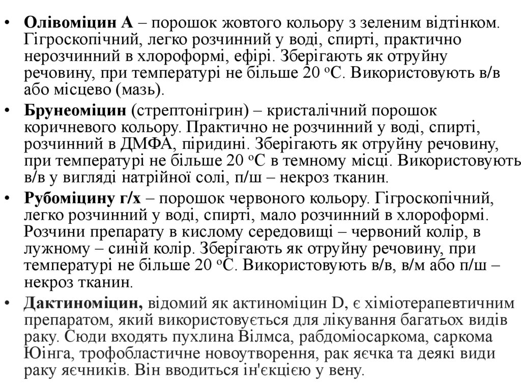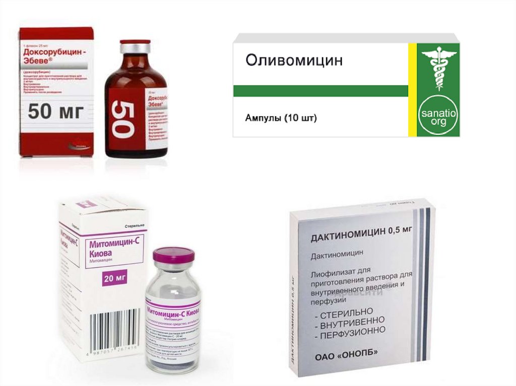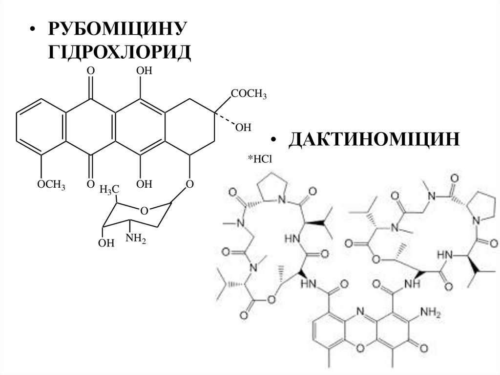 дактиноміцин, рубоміцину гідрохлорид, доксорубіцину
