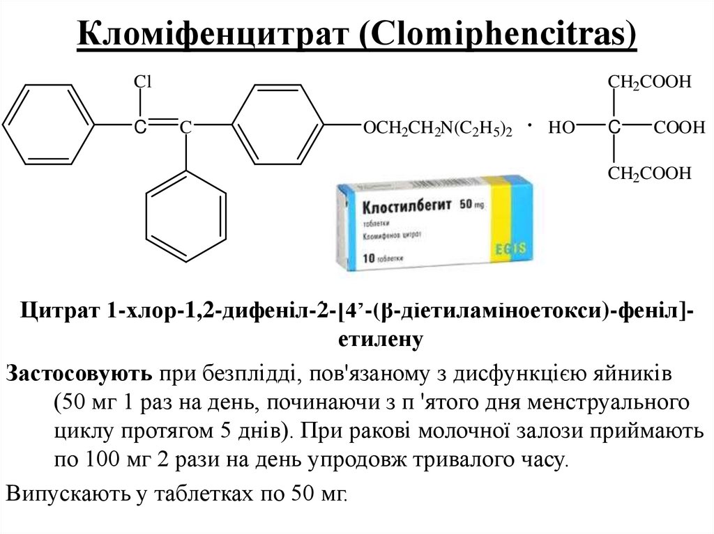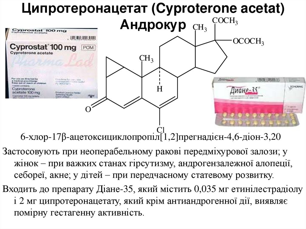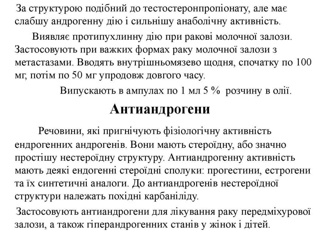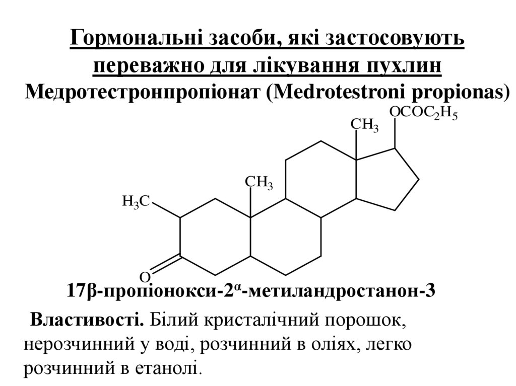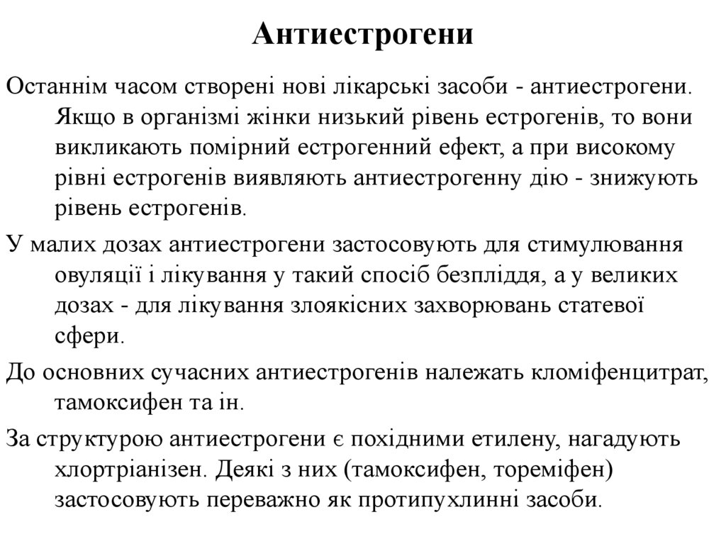 4. Гормональні засоби та їх антагоністи – медростеронупропіонат, фосфестрол, хлортріанізем, полиетрадіолфосфат, гестонорону капроат, медроксипрогестерону