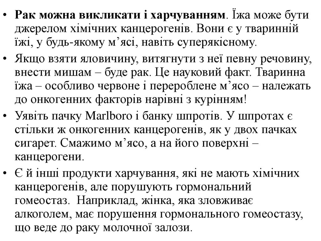 • Рак можна викликати і харчуванням. Їжа може бутиджерелом хімічних канцерогенів. Вони є у тваринній