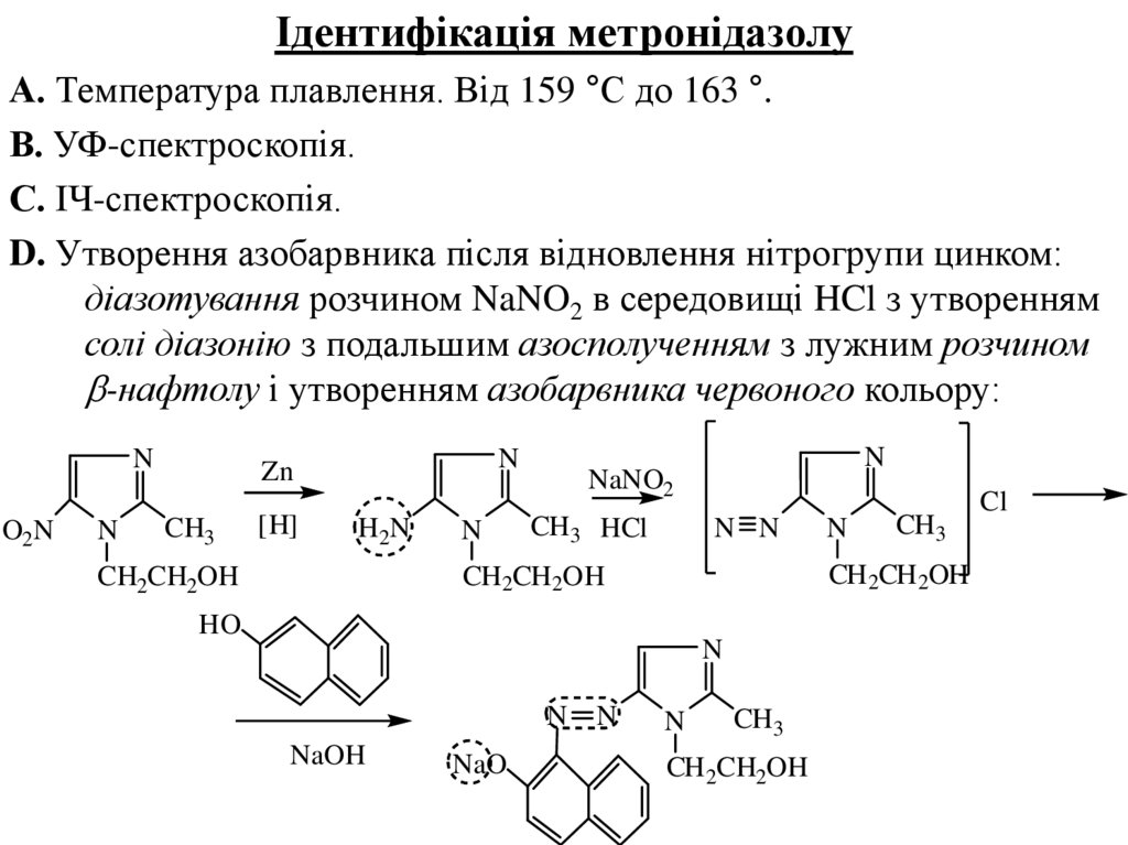 Ідентифікація метронідазолуА. Температура плавлення. Від 159 °С до 163 °.