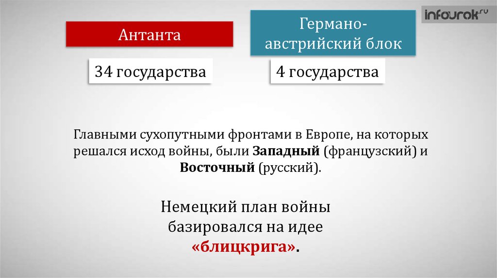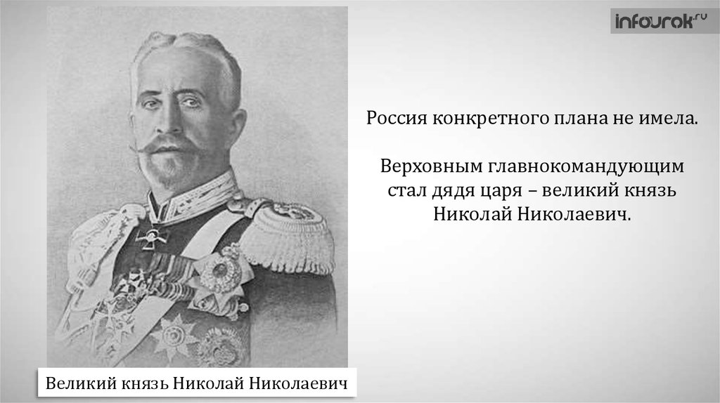 Россия конкретного плана не имела.Верховным главнокомандующим