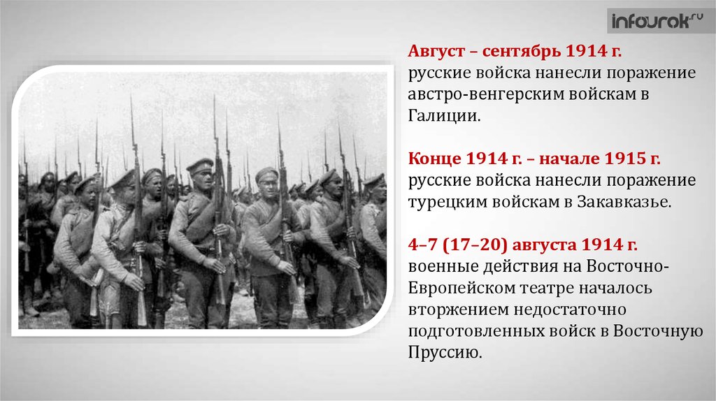 Август – сентябрь 1914 г.русские войска нанесли поражение