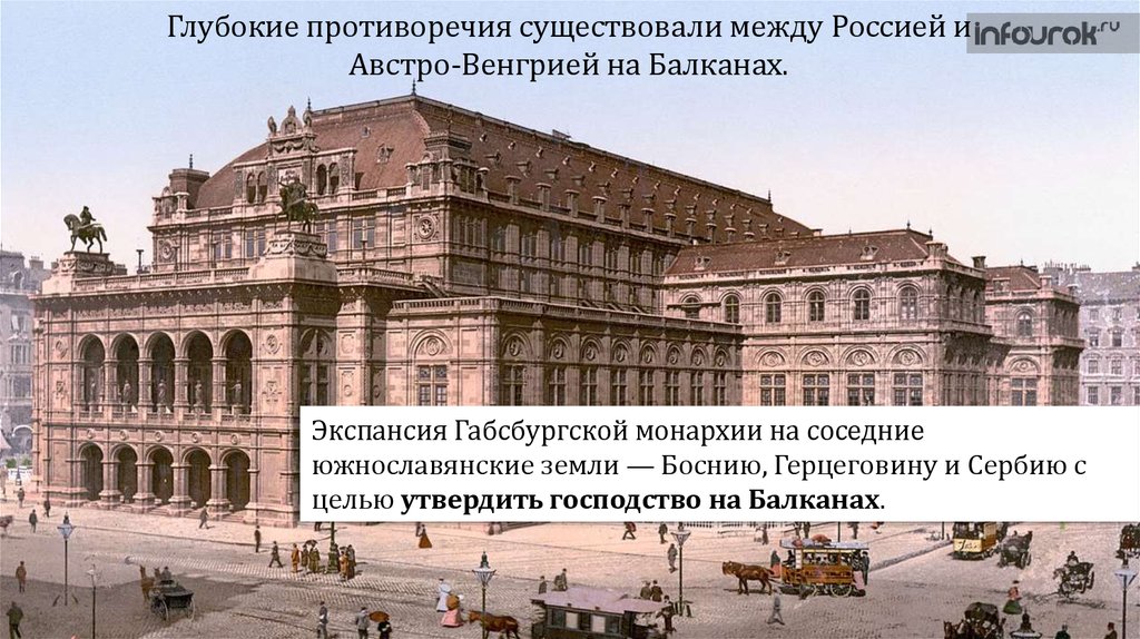 Глубокие противоречия существовали между Россией иАвстро-Венгрией на Балканах.