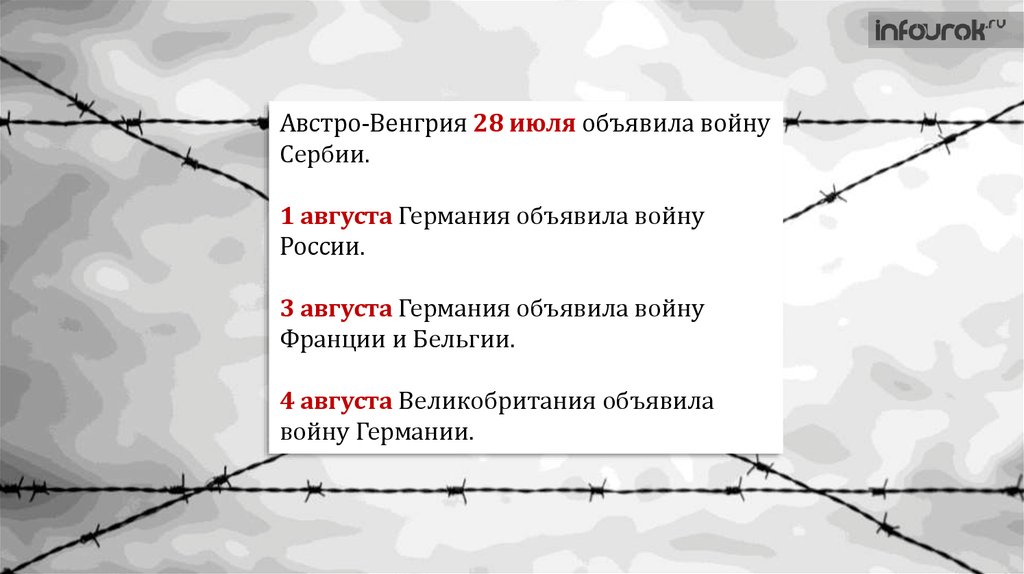 Австро-Венгрия 28 июля объявила войнуСербии.