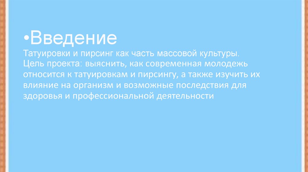 •ВведениеТатуировки и пирсинг как часть массовой культуры.
