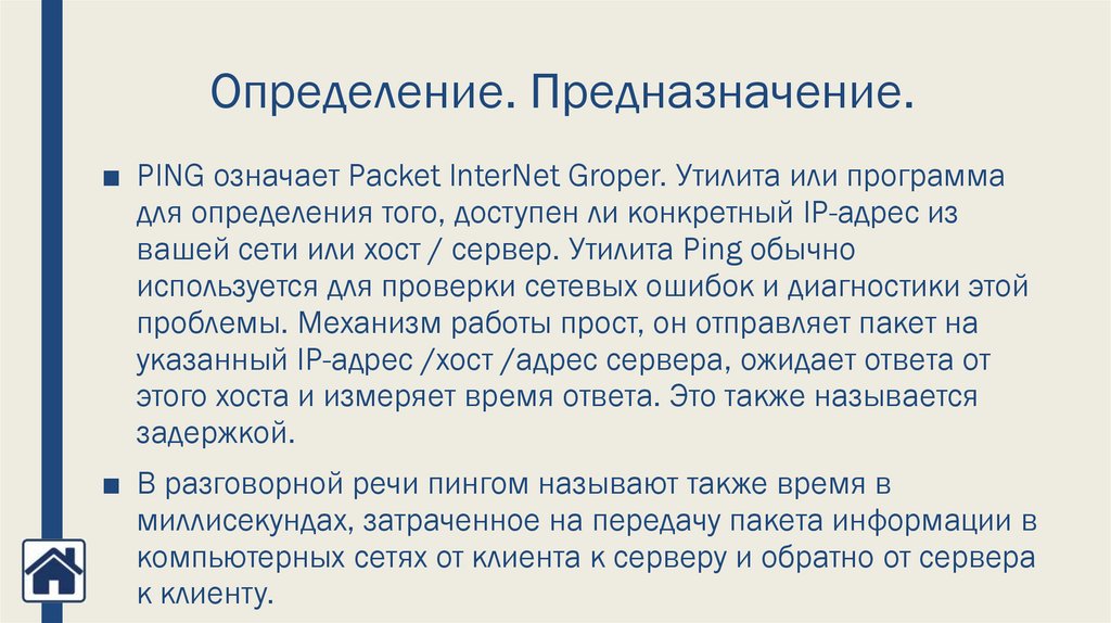 7. За что отвечает команда “ping”?