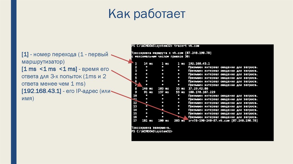 h. Сколько маршрутизаторов показывается при обращении к сайту vk.com, есть ли