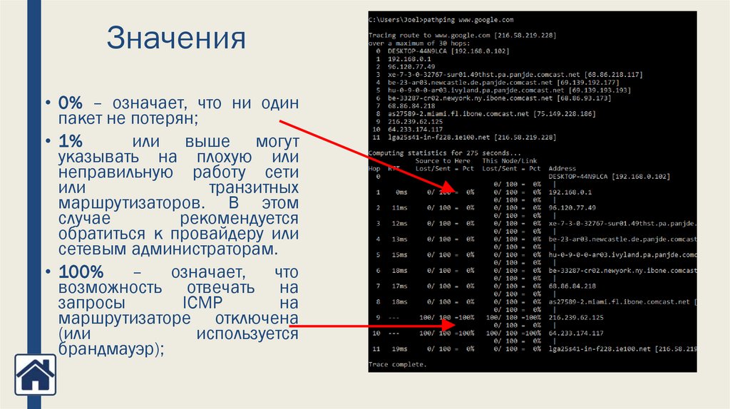 ■ Чем больше узлов в маршруте, тем дольше выполняется команда pathping.