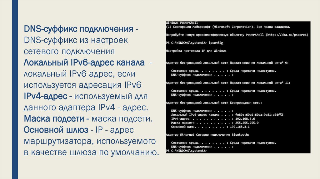 DHCP и DNS. При вызове команды ipconfig без