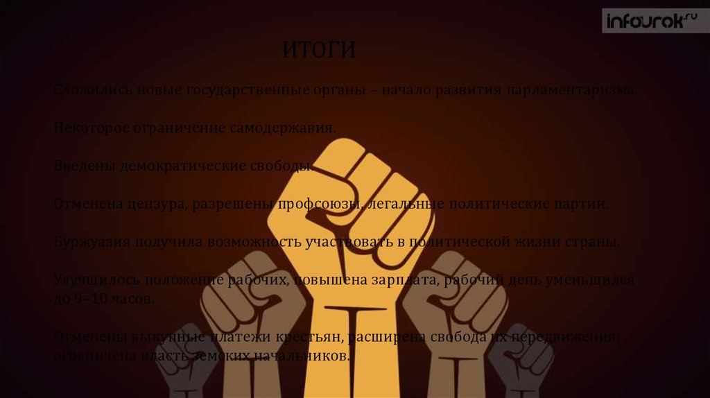 ИТОГИСложились новые государственные органы – начало развития парламентаризма.