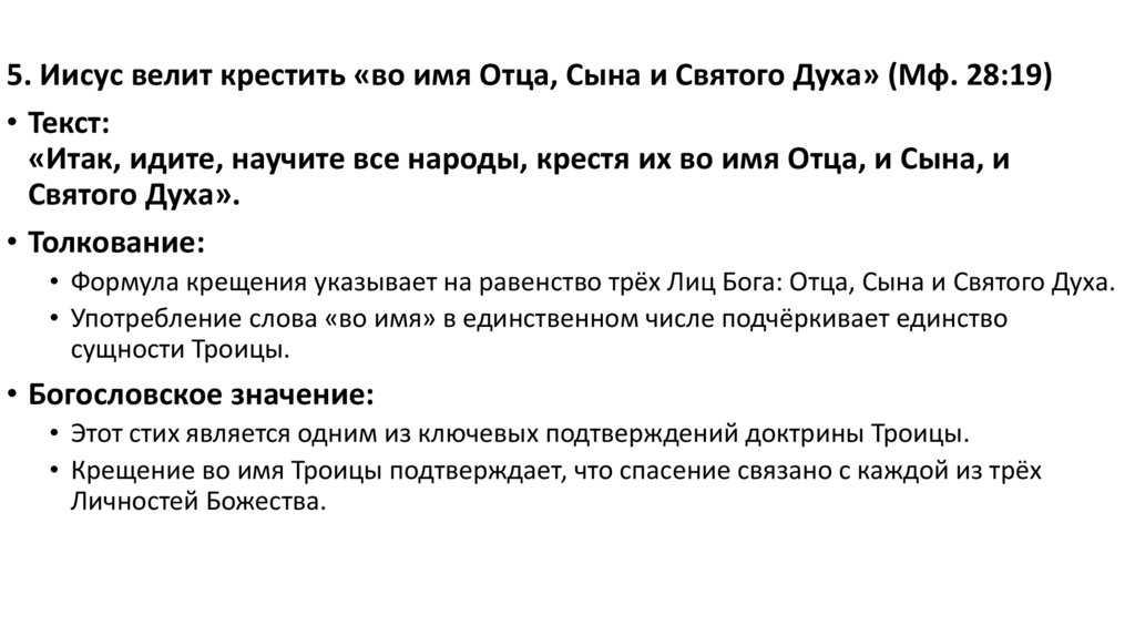 • Крещение «во имя Отца, Сына и Святого Духа» (Мф. 28:19) стало свидетельством
