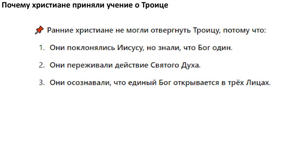 3. Противопоставление философскому подходу•Вера в Троицу возникла не как абстрактная философская