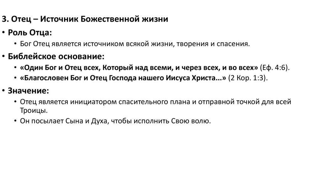 3. Отец – Источник Божественной жизни• Роль Отца: