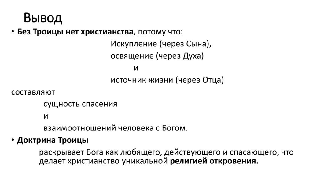 1. Характер откровения Троицы•Доктрина Троицы возникла не как теоретическое учение, а