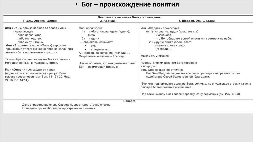 • Бог – происхождение понятияНа языках германского происхождения слово «Бог»