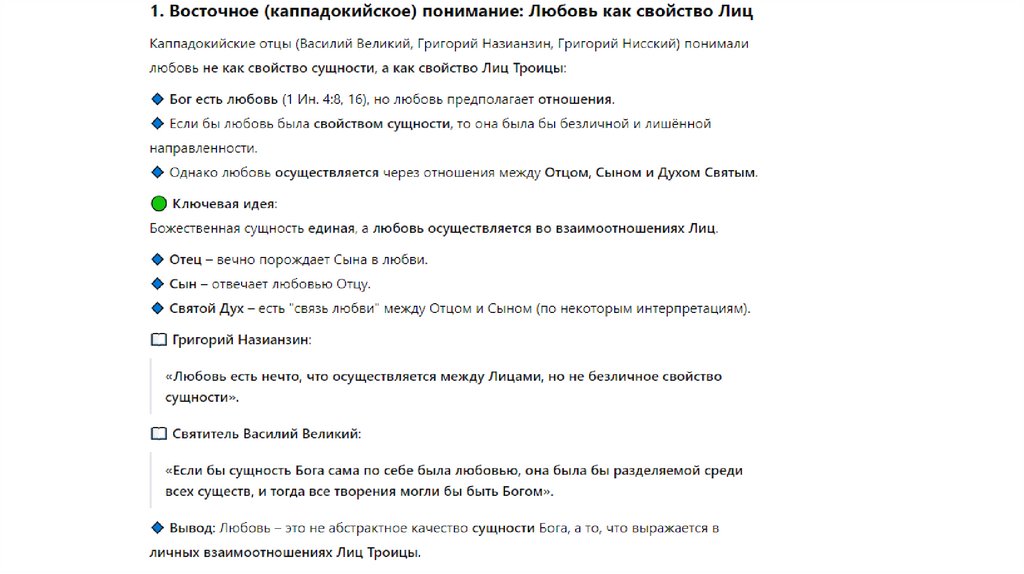 • Единство сущности Бога соединяется с различием Лиц, что становится основой