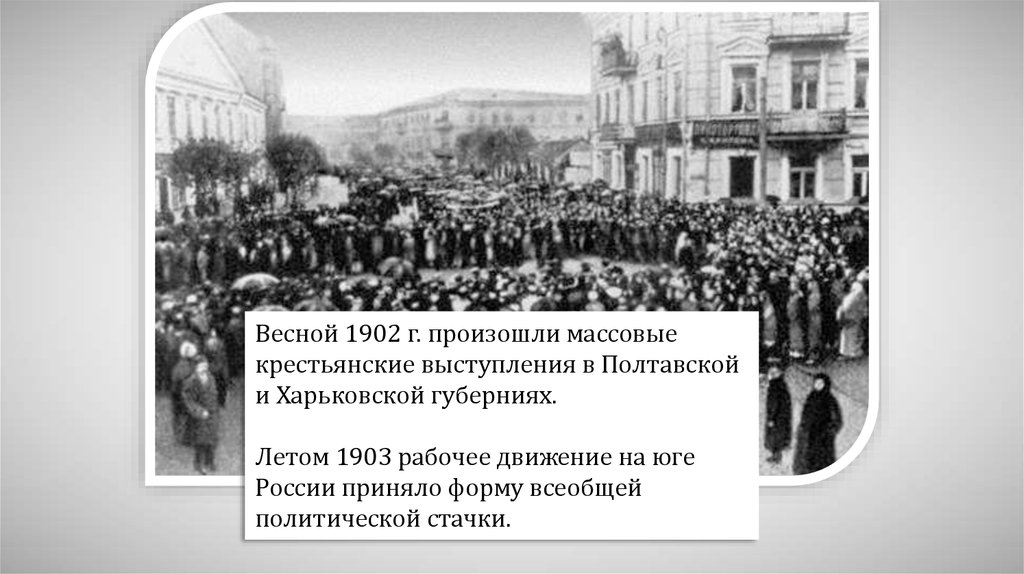 Весной 1902 г. произошли массовыекрестьянские выступления в Полтавской