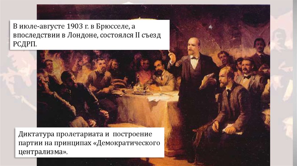 В июле-августе 1903 г. в Брюсселе, авпоследствии в Лондоне, состоялся II съезд