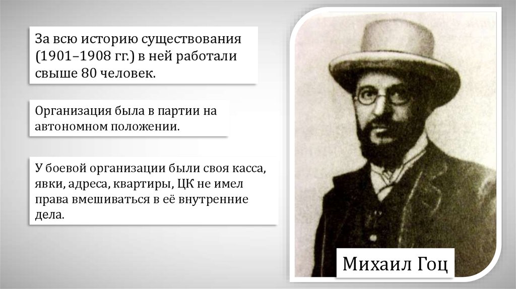 В апреле 1902 г. заявила о себеБоевая организация эсеров.