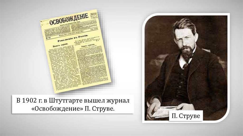 В 1902 г. в Штутгарте вышел журнал«Освобождение» П. Струве.