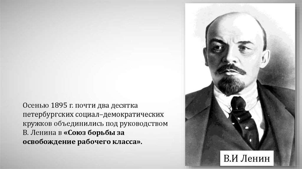 Осенью 1895 г. почти два десяткапетербургских социал–демократических