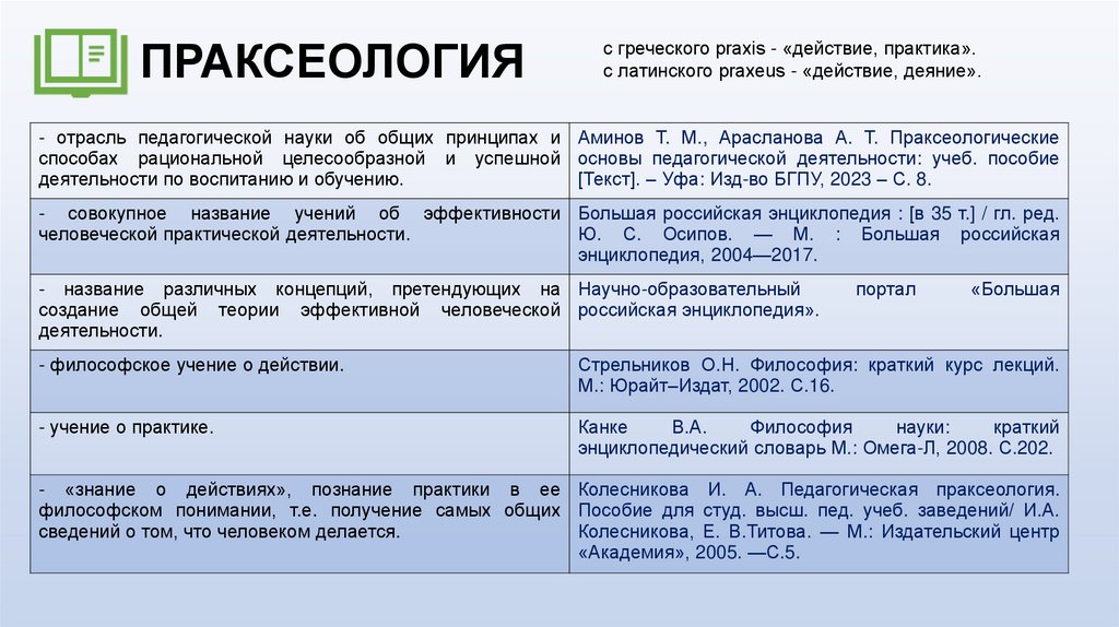 - отрасль педагогической науки об общих принципах и Аминов Т. М., Арасланова А. Т. Праксеологические