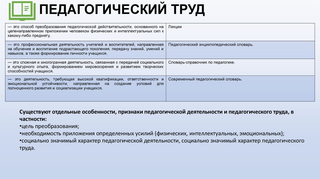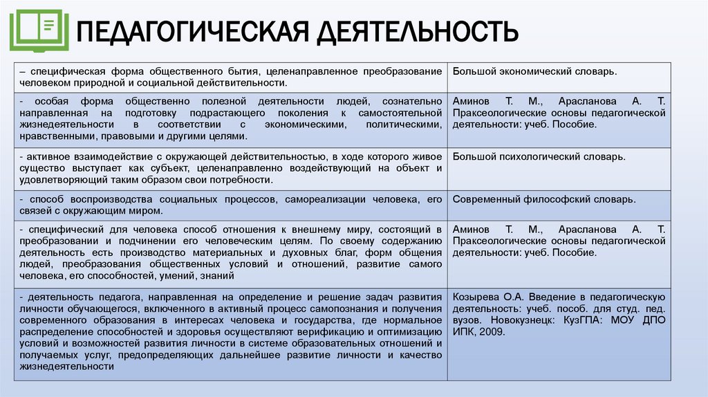 ПЕДАГОГИЧЕСКАЯ ДЕЯТЕЛЬНОСТЬ– специфическая форма общественного бытия, целенаправленное преобразование