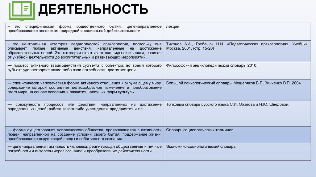 деятельности.