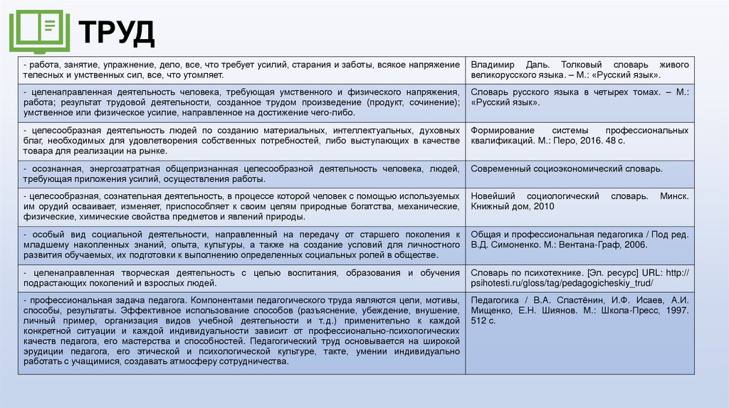 ТРУД- работа, занятие, упражнение, дело, все, что требует усилий, старания и заботы, всякое напряжение
