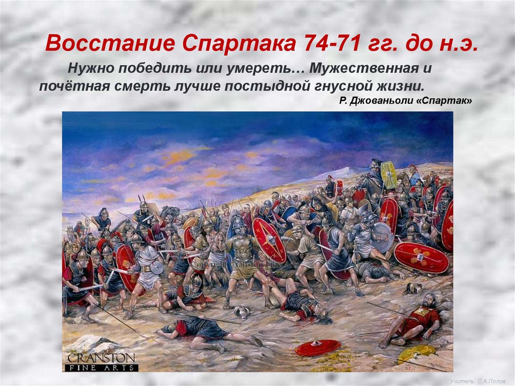 Восстание Спартака 74-71 гг. до н.э.Нужно победить или умереть… Мужественная и
