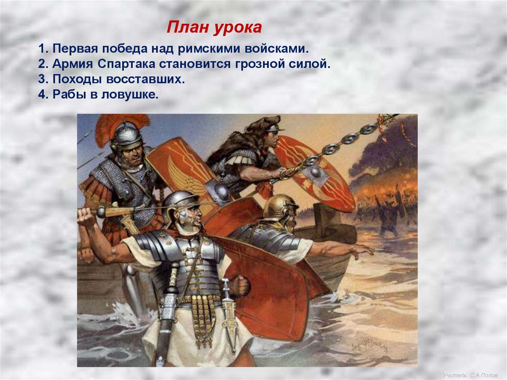 Первая победа над римскими войскамиОн развернул в школе агитацию, в результате которой ему удалось