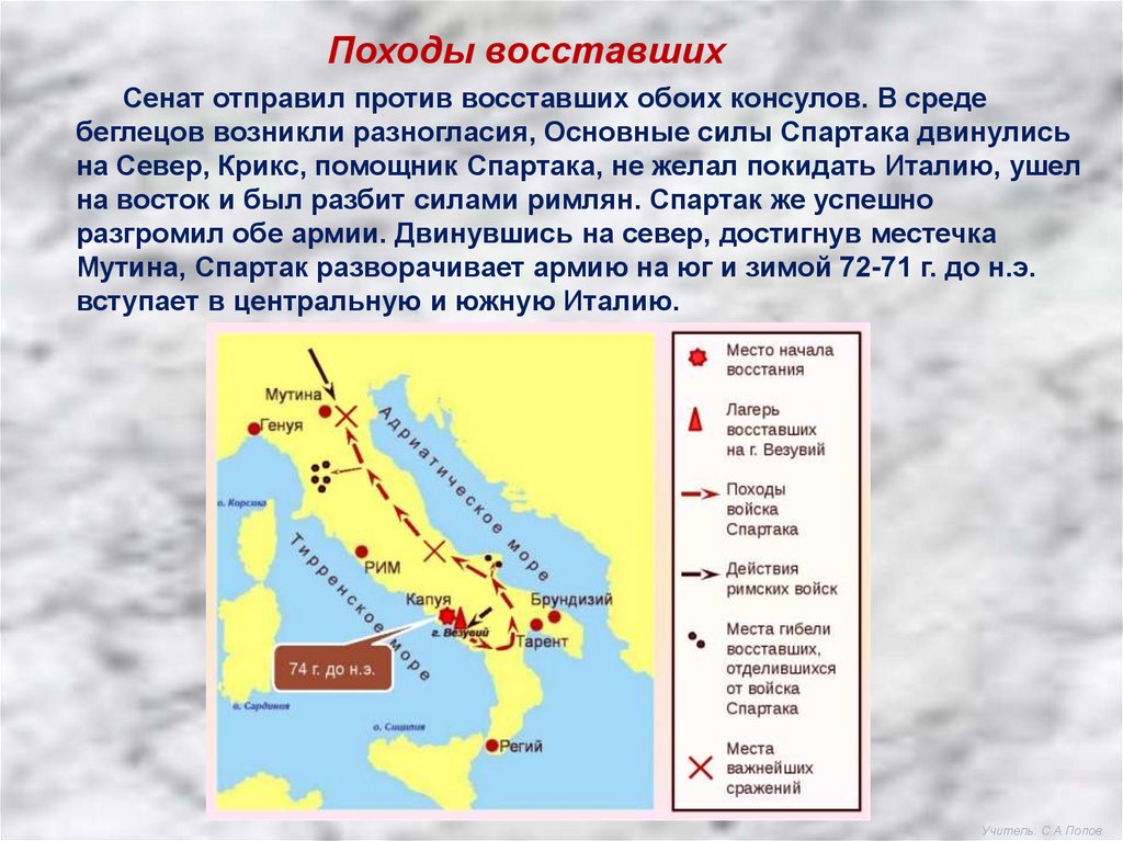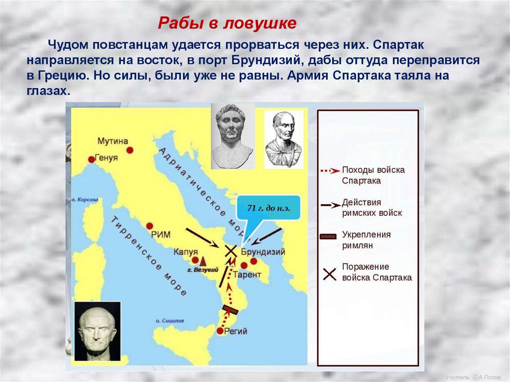 в Грецию. Но силы, были уже не равны. Армия Спартака таяла на