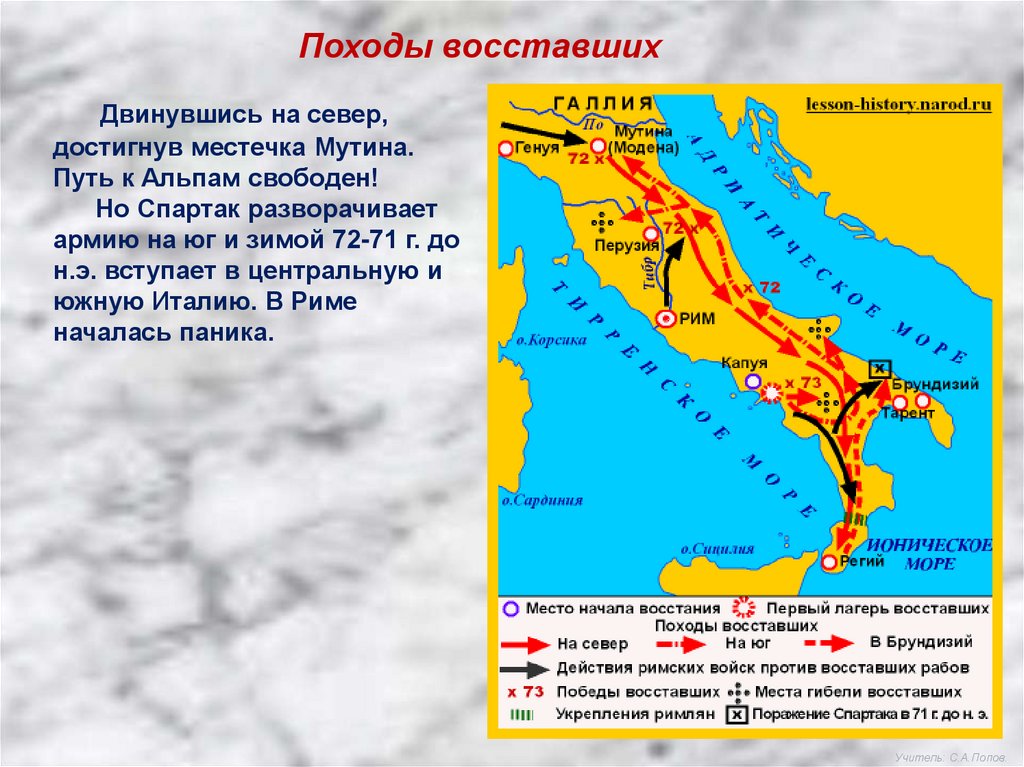 Походы восставшихБыло сформировано новое войско. Командующим стал претор Марк