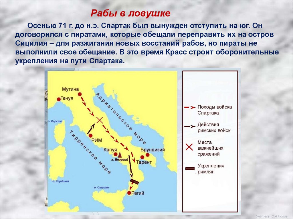 Рабы в ловушкеОсенью 71 г. до н.э. Спартак был вынужден отступить на юг. Он