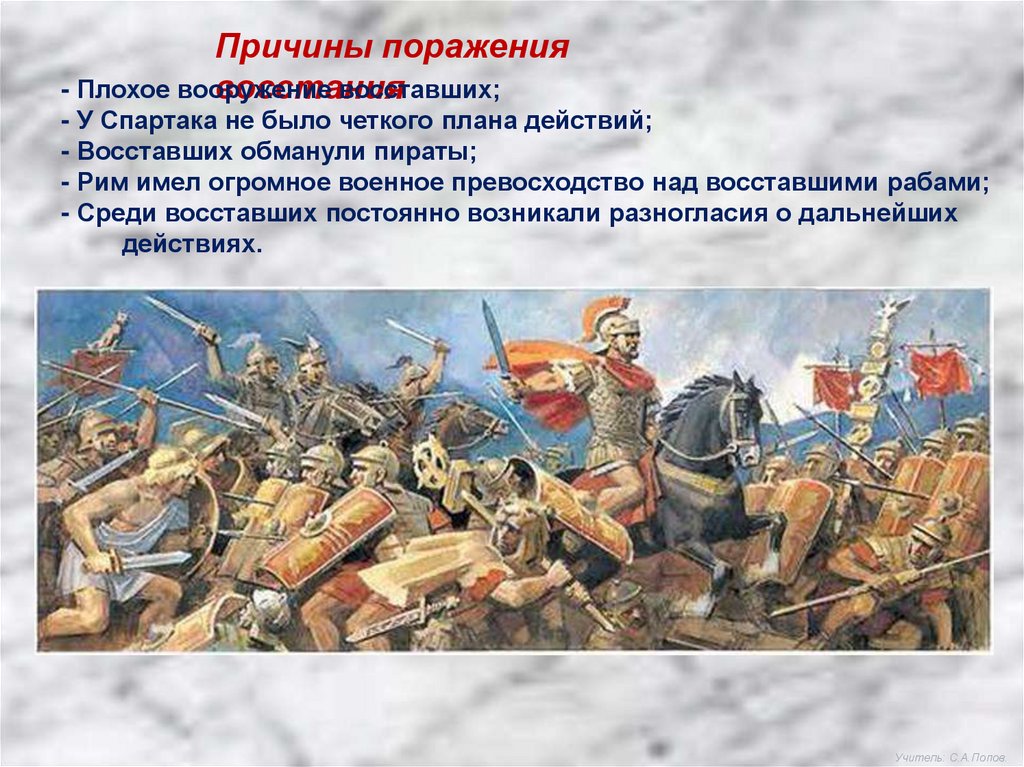 - Рим имел огромное военное превосходство над восставшими рабами;