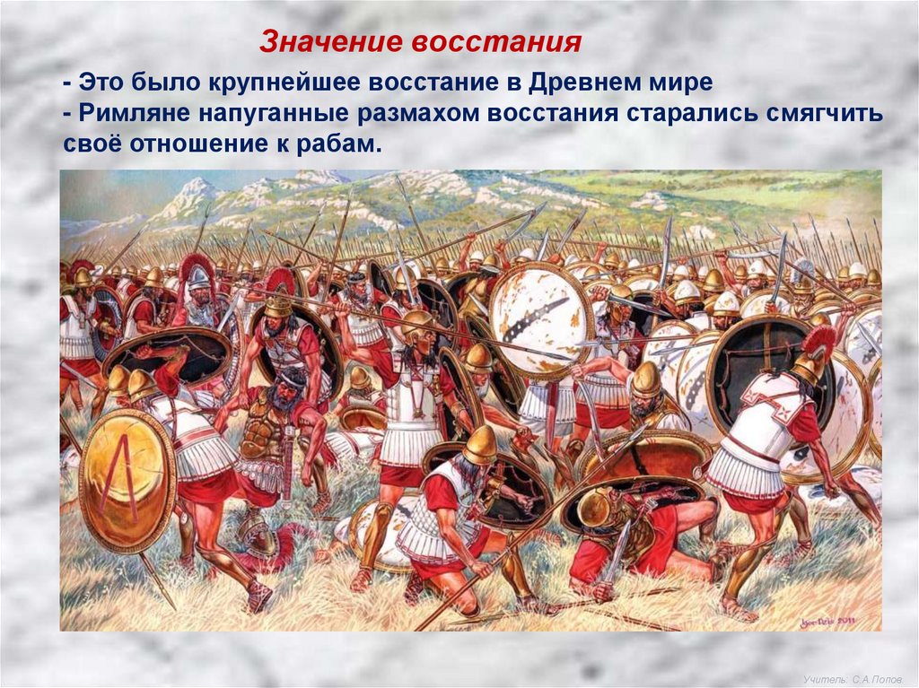 Значение восстания- Это было крупнейшее восстание в Древнем мире