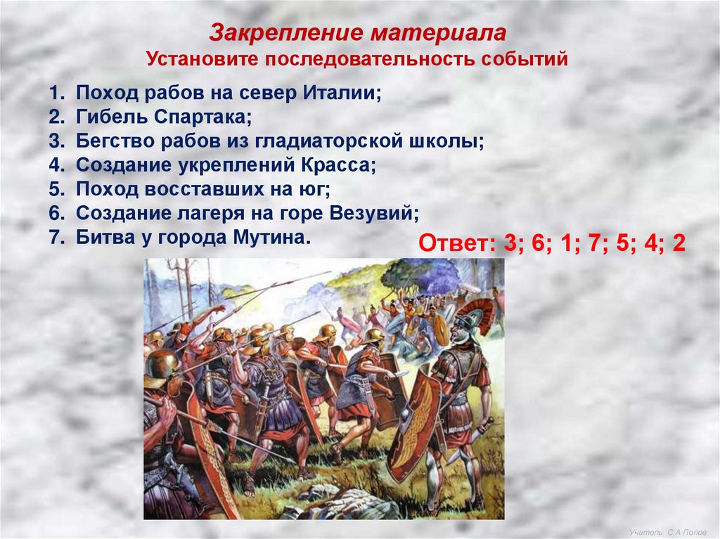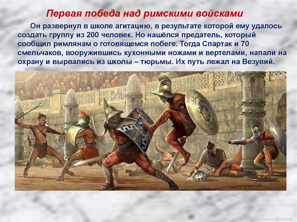сообщил римлянам о готовящемся побеге. Тогда Спартак и 70
