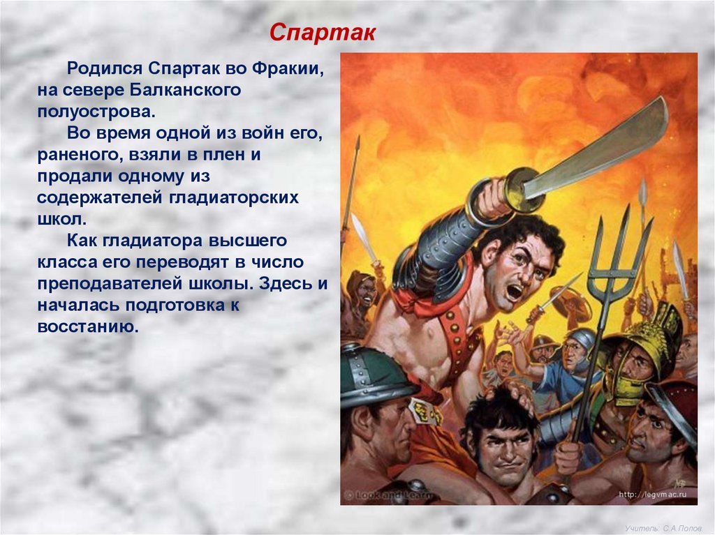 заговора стоял Спартак. Он отличался отвагой, физической силой,
