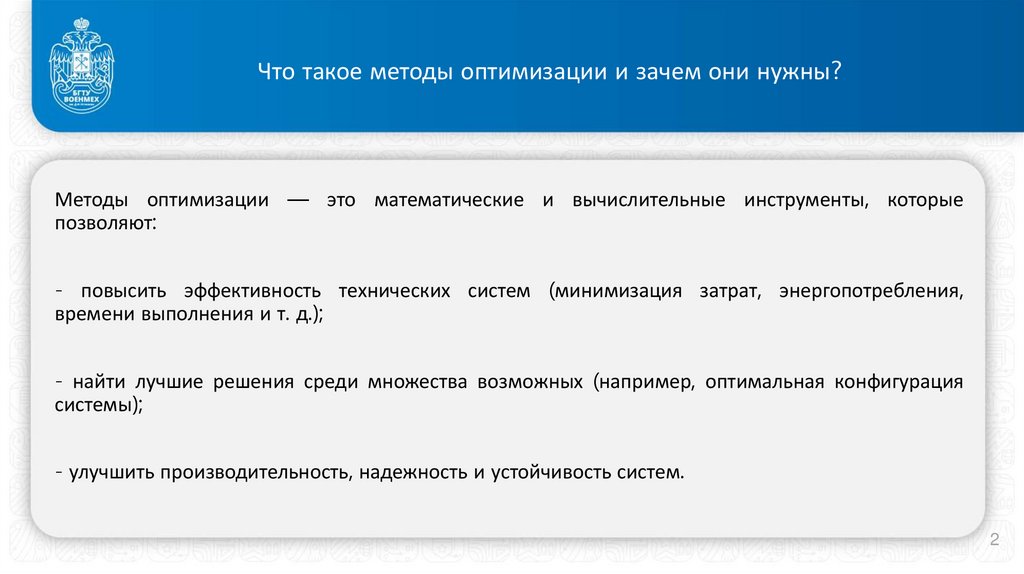 Что такое методы оптимизации и зачем они нужны?Методы оптимизации — это математические и вычислительные инструменты, которые