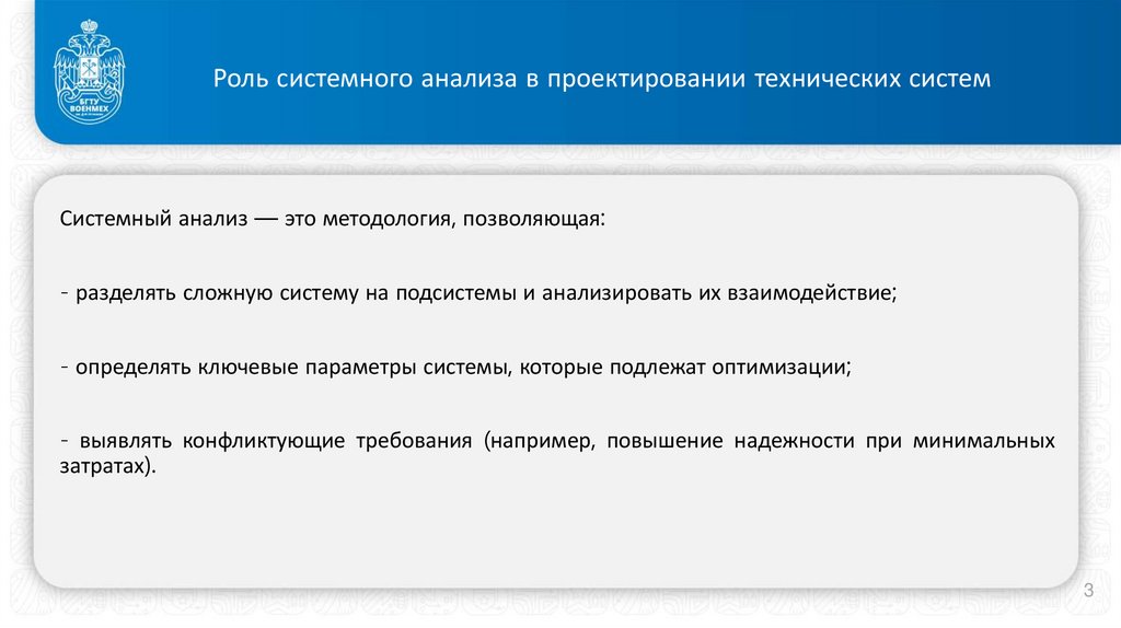Роль системного анализа в проектировании технических системСистемный анализ — это методология, позволяющая: