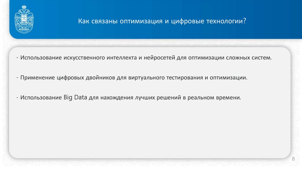 Как связаны оптимизация и цифровые технологии?- Использование искусственного интеллекта и нейросетей для оптимизации сложных систем.