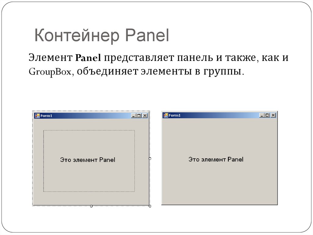 Контейнер PanelЭлемент Panel представляет панель и также, как и