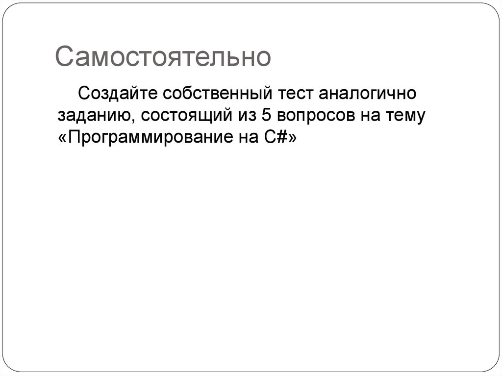 СамостоятельноСоздайте собственный тест аналогично