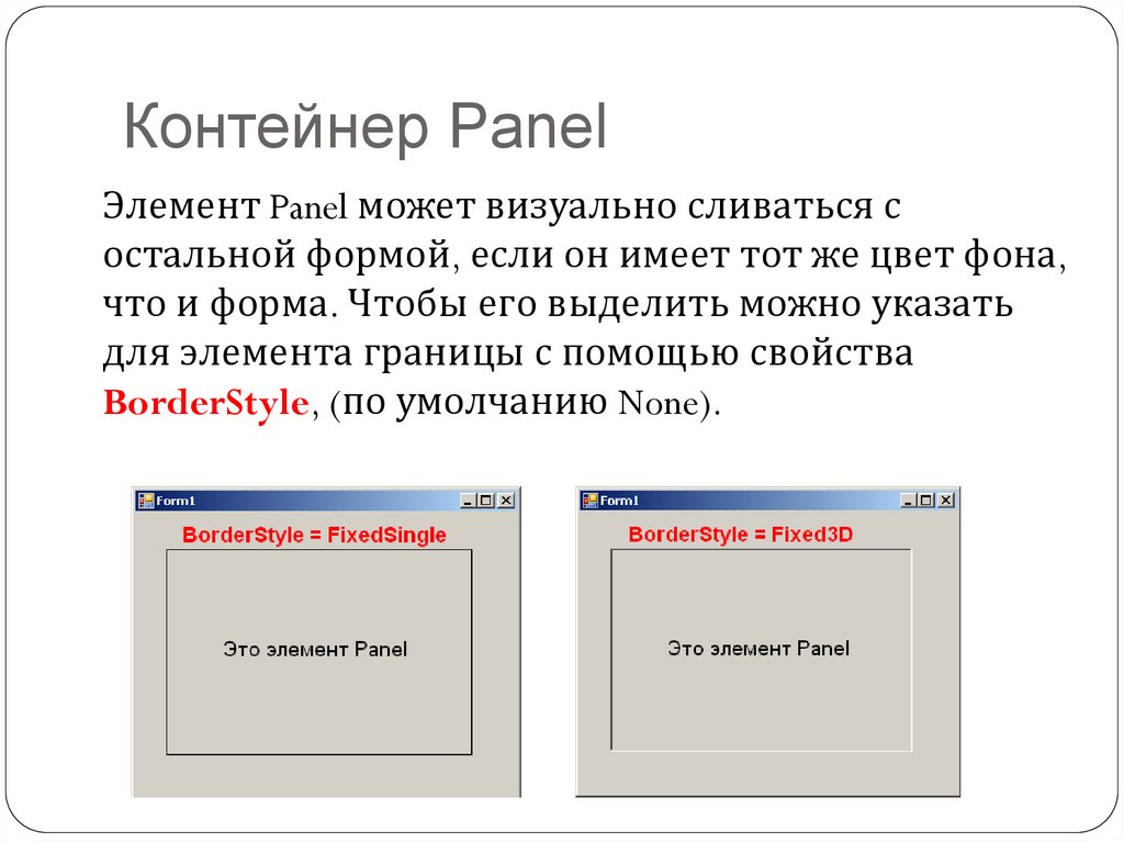 Контейнер PanelЭлемент Panel может визуально сливаться с
