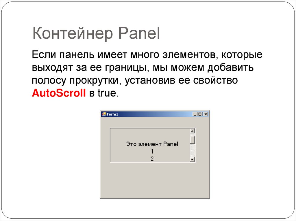 Контейнер PanelЕсли панель имеет много элементов, которые