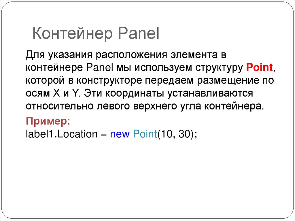 контейнере Panel мы используем структуру Point,