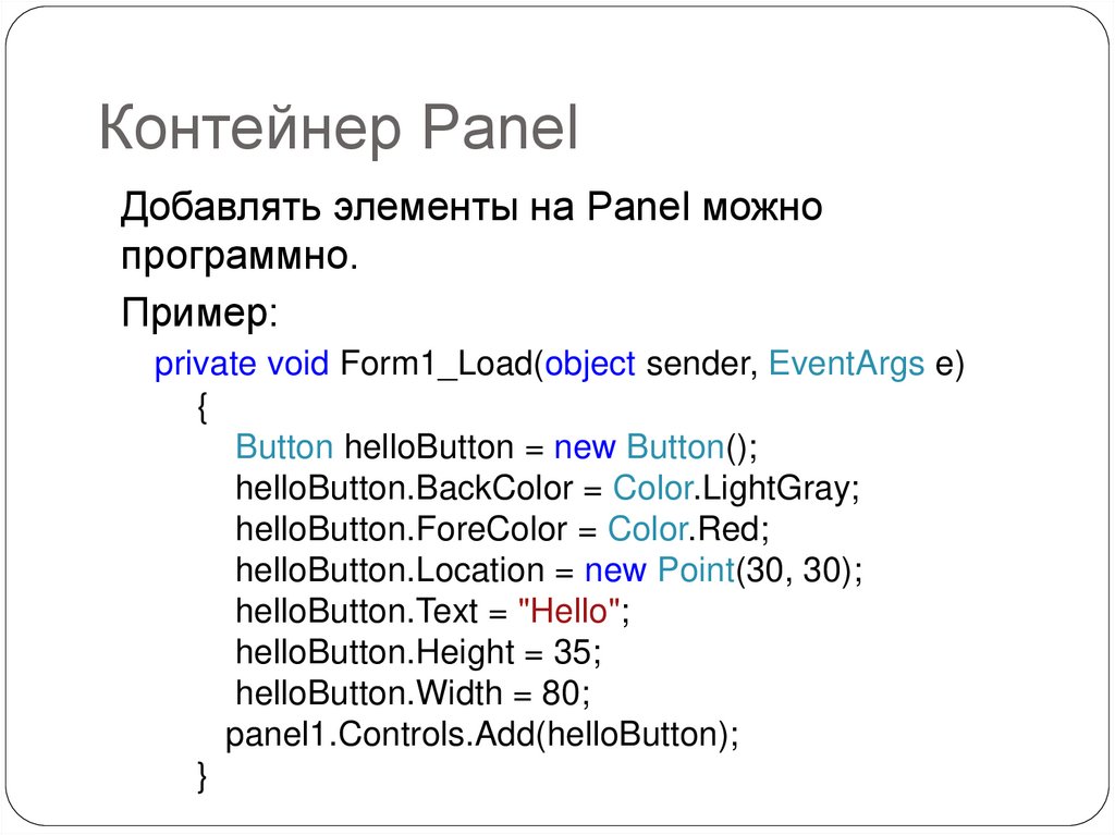 Контейнер PanelДобавлять элементы на Panel можно