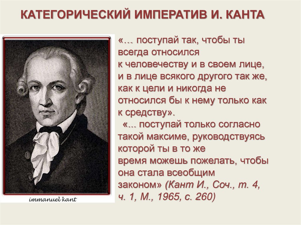 КАТЕГОРИЧЕСКИЙ ИМПЕРАТИВ И. КАНТА«… поступай так, чтобы ты