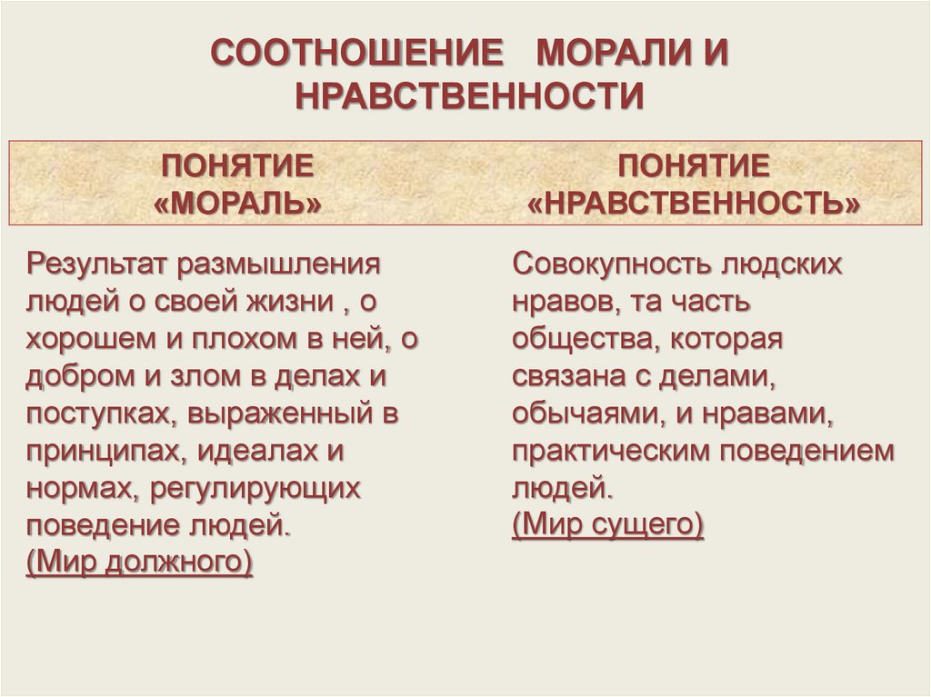 СООТНОШЕНИЕ МОРАЛИ ИНРАВСТВЕННОСТИ